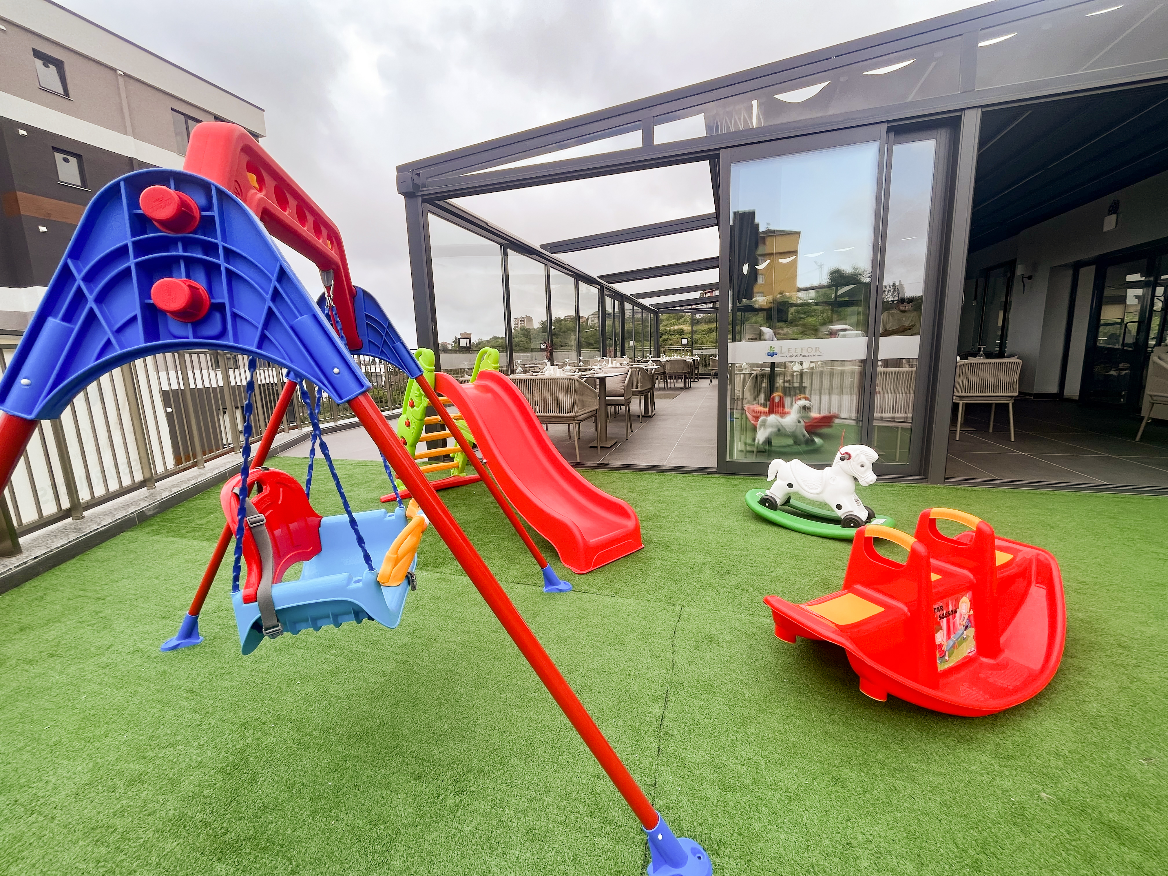 Otelimizin Çocuk Kulübü, sadece eğlenmekle kalmayıp aynı zamanda öğrenmek ve keşfetmek için tasarlanmıştır. 3-7 yaş grubu çocukların ilgi alanlarına yönelik etkinlikler ve oyunlar Çocuk Kulübümüzde! Siz Leefor Cafe& Patisserie’de yemeğinizi yerken ya da sağlık kulübünde keyifle vakit geçirirken çocuğunuz güvenli, eğitici ve eğlenceli ortamda kişisel becerilerini geliştirebilecek.